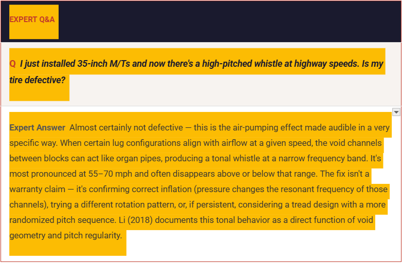 Modern off-road builds are complex systems where tread pattern, inflation pressure, wheel offset, suspension geometry, and road surface all interact to produce the acoustic experience you live with every day. Forum hacks target one variable at a time and ignore the system. At Level 4x4, every build is engineered as a system — not assembled from parts.