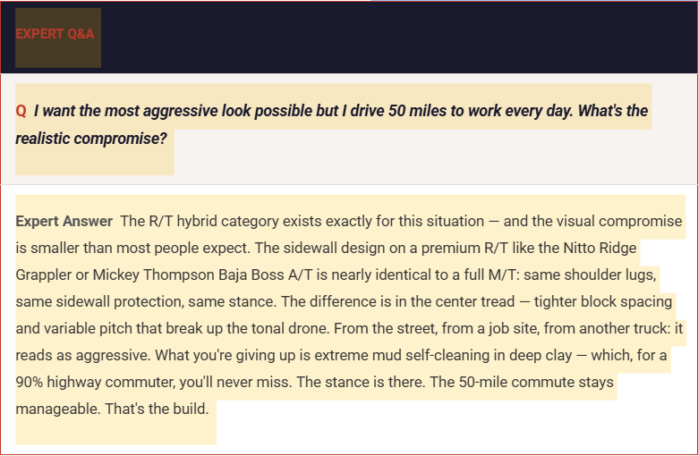 The aggressive stance Jason is building for should command respect on the job site and stay quiet enough on the interstate to take a call. That's achievable — with the right tire category, correct fitment, and a maintenance discipline that treats the build as an ongoing responsibility, not a one-time purchase.